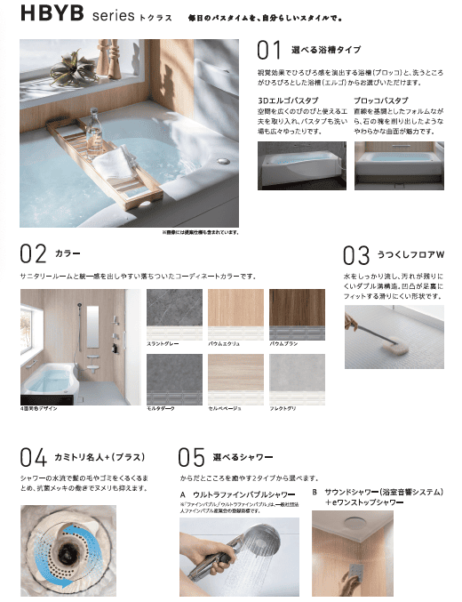 トクラスのHBYBシリーズは、お風呂掃除を快適することができるお風呂です。