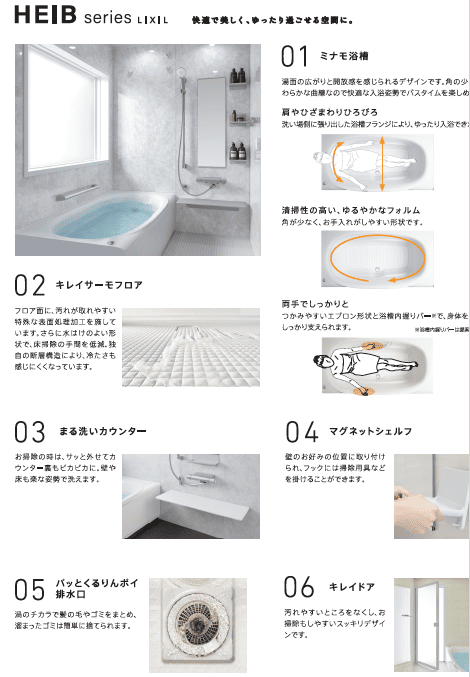 LIXILのHEIBシリーズは、しっかり身体が温まる工夫と設備が整ったお風呂です。